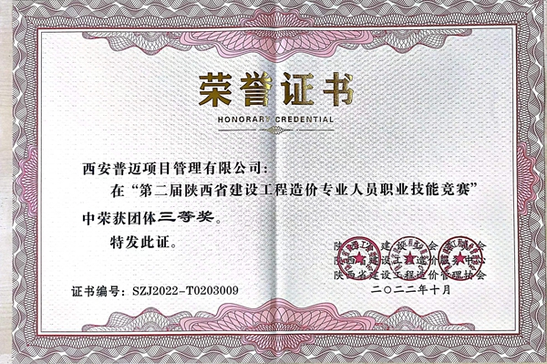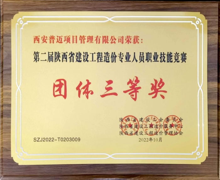 第二屆陜西省建設(shè)工程造價專業(yè)人員職業(yè)技能競賽頒獎大會召開 普邁公司榮獲團體三等獎受表彰
