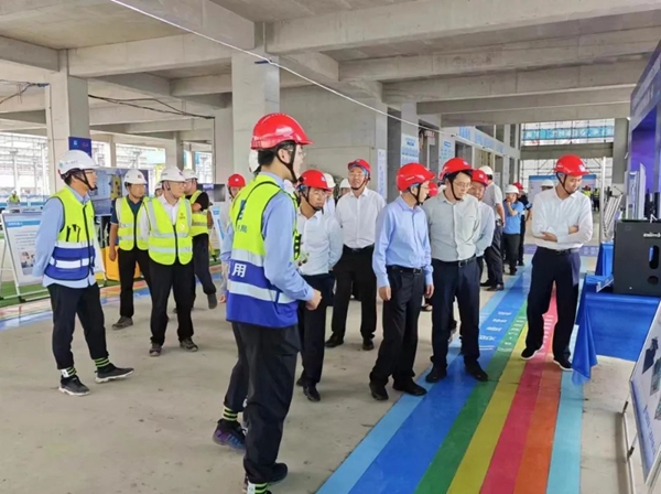 2023年9月21日,由我司承監(jiān)的西電智慧產(chǎn)業(yè)園項目承辦西安市智能建造與新型建造工業(yè)化協(xié)同發(fā)展暨文明工地現(xiàn)場觀摩活動,住房和城鄉(xiāng)建設(shè)部科技與產(chǎn)業(yè)化發(fā)展中心黨委書記、主任劉新鋒,副處長王廣明,西安市住建局建筑業(yè)管理處處長施文鑫,副處長巢紅峰,西安市建筑節(jié)能協(xié)會副會長兼秘書長常瑞鳳蒞臨觀摩指導。西電園區(qū)辦副主任武克耀,我公司董事長李三虎,副總工程師、項目總監(jiān)李安忠,中建八局西北公司副總賀永勇,紀委書記孔龍飛等陪同。