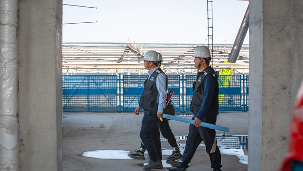 時值深秋,歷經(jīng)幾場秋雨的洗滌,關(guān)中平原已然變得涼爽濕潤,但中國西電西安智慧產(chǎn)業(yè)園項目的建設勢頭依舊熱火朝天,這里塔吊林立,機械轟鳴,全無秋天的蕭瑟,而是一派生機盎然的壯闊之景。此時,一位監(jiān)理人正在工地上巡檢,他精神抖擻,目光如炬。只見他熟練地運用著測量工具,細致地核驗著每一處施工細節(jié)。