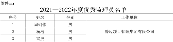 2021-2022年度陜西省優(yōu)秀監(jiān)理員