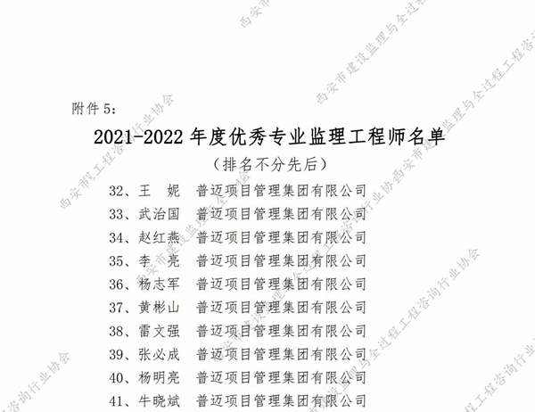 2021-2022年度西安市優(yōu)秀監(jiān)理員