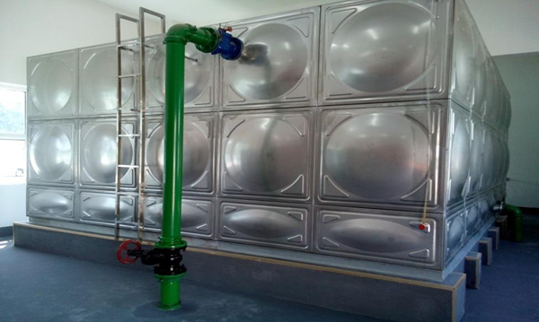 6)生活水箱:一般為不銹鋼材質(zhì),食品級304、現(xiàn)場檢查,可用磁鐵檢驗(yàn)(不吸為好材料)內(nèi)拉筋、人孔、梯子、進(jìn)出口、溢流管、排污管按圖施工(人孔枷鎖)并做滿水試驗(yàn),基礎(chǔ)高于50cm水箱下設(shè)置10#鍍鋅槽鋼,詳見圖集:
