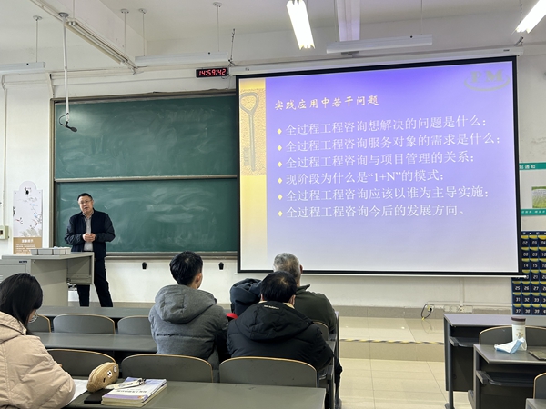 2024年1月4日下午,公司總經(jīng)理景亞杰前往西安建筑科技大學(xué)草堂校區(qū),與管理學(xué)院工程管理系主任高志堅老師等70余名師生進行“全過程工程咨詢”專題交流。
