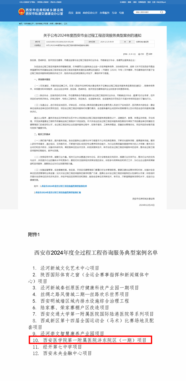 正如信中所說,公司在承接本項目后高度重視,嚴(yán)格按照合同約定組建現(xiàn)場全咨服務(wù)團(tuán)隊,同時在公司層級組建項目顧問專家團(tuán)隊,為本項目全過程咨詢服務(wù)奠定良好基礎(chǔ)。在服務(wù)過程中,全咨服務(wù)團(tuán)隊配備了具有豐富醫(yī)療項目經(jīng)驗的管理人員,提升團(tuán)隊專業(yè)化程度。在全過程工程咨詢模式下,堅持策劃先行、明確目標(biāo)、突出重點,從項目全生命周期角度出發(fā),通過深入溝通了解業(yè)主的需求、報批報建齊頭并進(jìn)及應(yīng)用建筑信息模型BIM技術(shù)等措施,將建設(shè)單位的長期戰(zhàn)略規(guī)劃落實到項目中,確保項目現(xiàn)場安全、質(zhì)量、進(jìn)度、投資均處于受控狀態(tài),在節(jié)約工期、節(jié)省費用方面發(fā)揮了積極作用,并入選了西安市住房和城鄉(xiāng)建設(shè)局“西安市2024年度全過程工程咨詢服務(wù)典型案例名單”,憑借卓越的服務(wù)效能得到了項目建設(shè)單位和轄區(qū)住建管理部門的肯定和認(rèn)可。