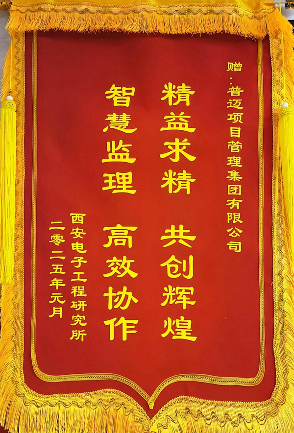 新春將至,公司提供服務(wù)的多個項目憑借高質(zhì)量履約收獲建設(shè)單位的高度認(rèn)可和贊揚,一封封表揚信、感謝信紛至沓來!近日,公司再次收到了建設(shè)單位西安電子工程研究所送來的“精益求精 共創(chuàng)輝煌 智慧監(jiān)理 高效協(xié)作”錦旗和表揚信,對公司派駐現(xiàn)場的由總監(jiān)趙蕾及總監(jiān)代表王遲帶領(lǐng)的監(jiān)理團隊表示了感謝和贊揚!