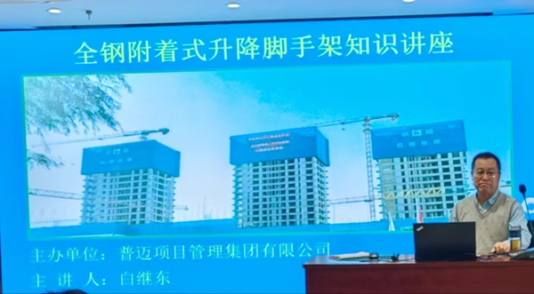 第三場培訓于2月14日上下午舉行,公司特邀《建筑施工工具式腳手架安全技術規(guī)范》JGJ202-2010、《建筑施工全鋼附著式升降腳手架安全技術規(guī)程》DB61/T5112-2024參編人、爬架行業(yè)資深專家白繼東擔任主講,這是白總第三次受邀來我司講授爬架專業(yè)知識。白總從全鋼附著式升降腳手架的發(fā)展歷程、構造措施及基本要求、特殊位置的處理方法、技術指標與參數(shù)、檢查驗收、施工現(xiàn)場存在的問題實例、證書報告解讀與查驗、監(jiān)理人員現(xiàn)場關注要點等八個方面對陜西省住建廳《建筑施工全鋼附著式升降腳手架安全技術規(guī)程》DB61/T5112-2024進行了細致深入的講解,培訓課程涵蓋大量生動的施工現(xiàn)場圖片,使標準中的條例形象化,便于大家直觀理解、加深印象。