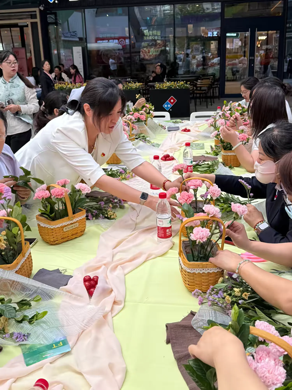 在專業(yè)花藝師的現(xiàn)場指導(dǎo)下,大家精心挑選康乃馨、玫瑰、滿天星等花材,修枝剪葉,構(gòu)思配色,讓枝葉芬芳被巧手賦予新的生命,讓愛與感恩在指尖肆意流淌。以花為禮、以愛之名,致敬所有偉大的母親。