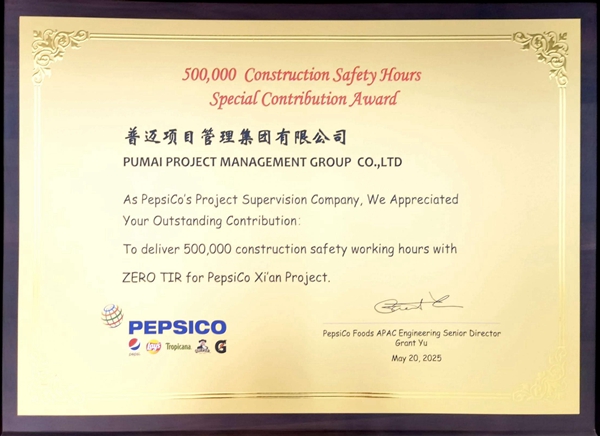這份榮譽(yù)不僅是建設(shè)單位對(duì)普邁監(jiān)理團(tuán)隊(duì)安全管理水平的高度認(rèn)可,更是雙方精誠(chéng)合作、共筑堅(jiān)實(shí)安全防線的有力見(jiàn)證。隨著百事食品(陜西)生產(chǎn)基地項(xiàng)目向著竣工投產(chǎn)目標(biāo)穩(wěn)步推進(jìn),普邁項(xiàng)目管理集團(tuán)有限公司將繼續(xù)以專業(yè)的監(jiān)理服務(wù)筑牢項(xiàng)目建設(shè)安全基石,助力百事公司書(shū)寫項(xiàng)目安全、高效、優(yōu)質(zhì)建設(shè)的新篇章。