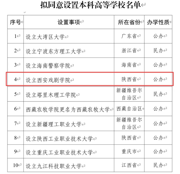 2025年6月11日,國家教育部官網(wǎng)發(fā)布《關(guān)于擬同意設(shè)置本科高等學(xué)校的公示》。其中,由我公司負(fù)責(zé)代建的西安戲劇學(xué)院項目也在公示名單之列。