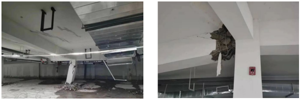 附圖1 某車庫頂板超載導(dǎo)致地下室結(jié)構(gòu)產(chǎn)生破壞