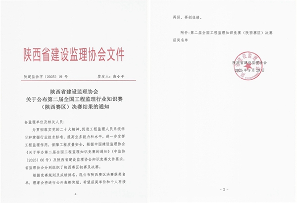 第二屆全國監(jiān)理行業(yè)知識競賽(陜西賽區(qū))決賽結(jié)果公布!公司5名員工榮獲佳績!