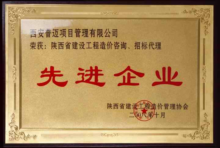陜西省建設(shè)工程造價咨詢、招標代理先進企業(yè)