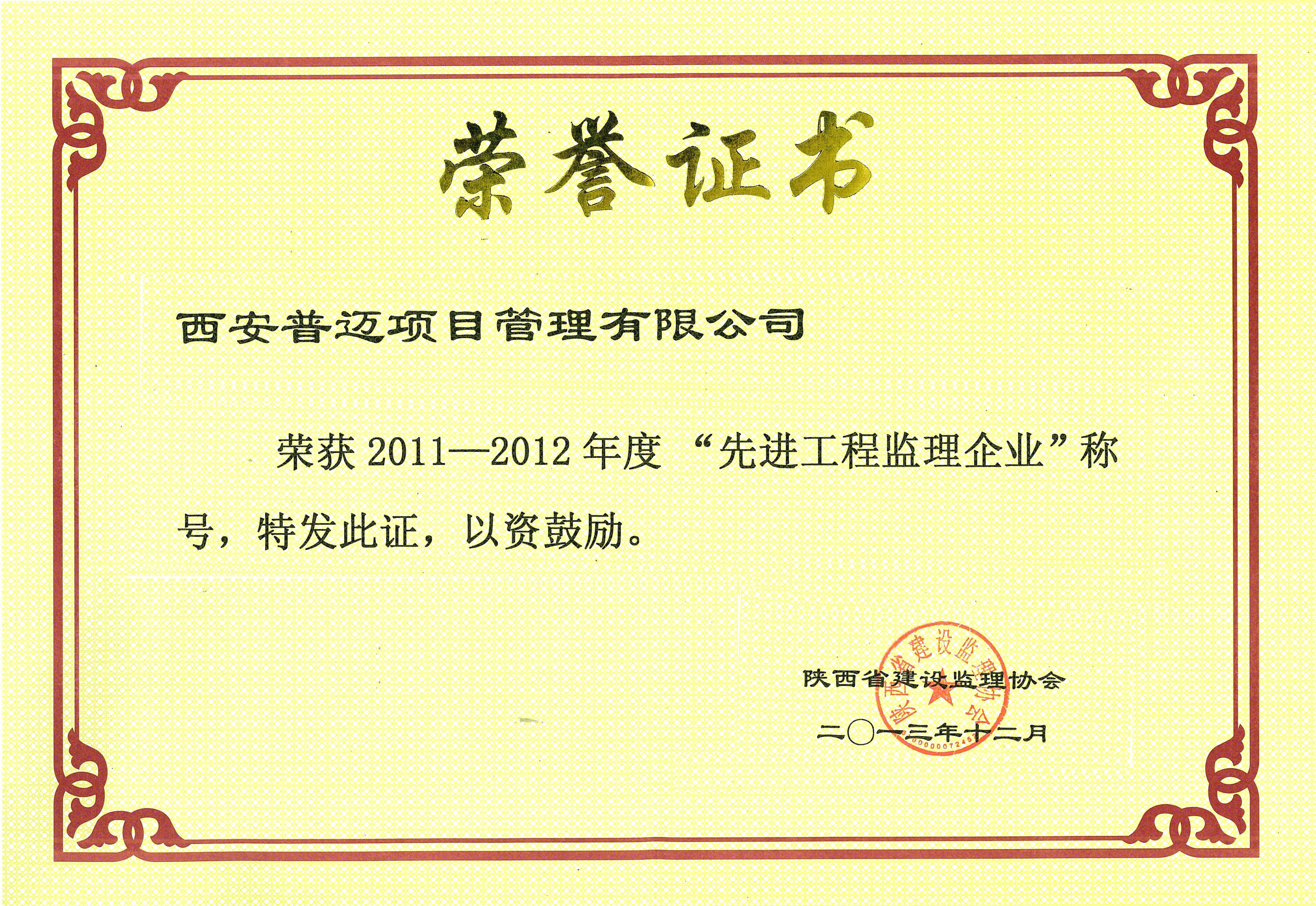 2011-2012年度陜西省先進(jìn)工程監(jiān)理企業(yè)
