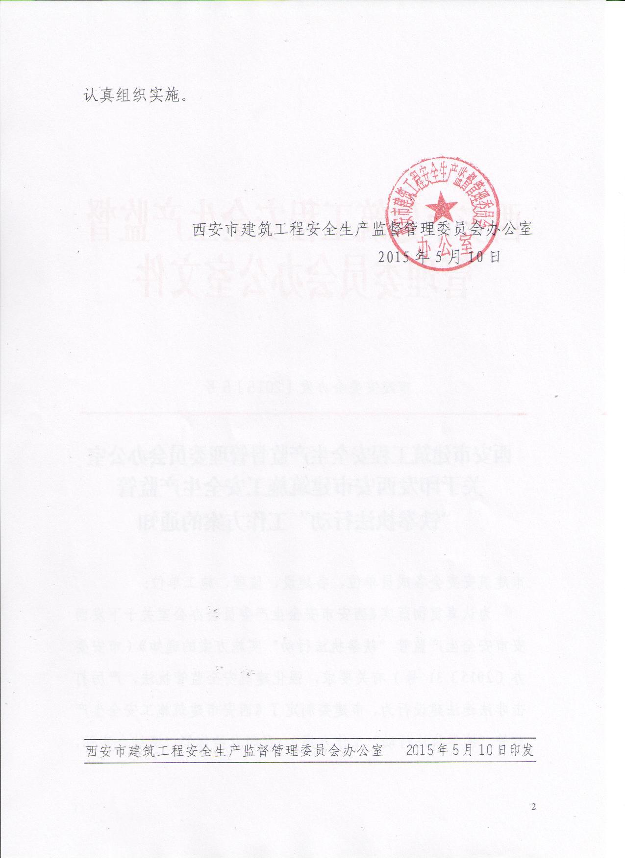 市建安委會辦發(fā)[2015]5號關(guān)于印發(fā)西安市建筑施工安全生產(chǎn)監(jiān)管“鐵拳執(zhí)法行動”工作方案的通知