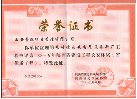 獲得2015年陜西省建設(shè)工程長(zhǎng)安杯獎(jiǎng)(省優(yōu)質(zhì)工程)