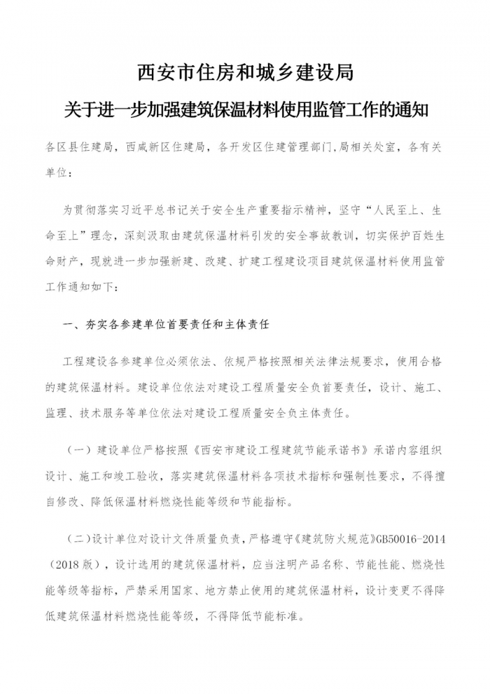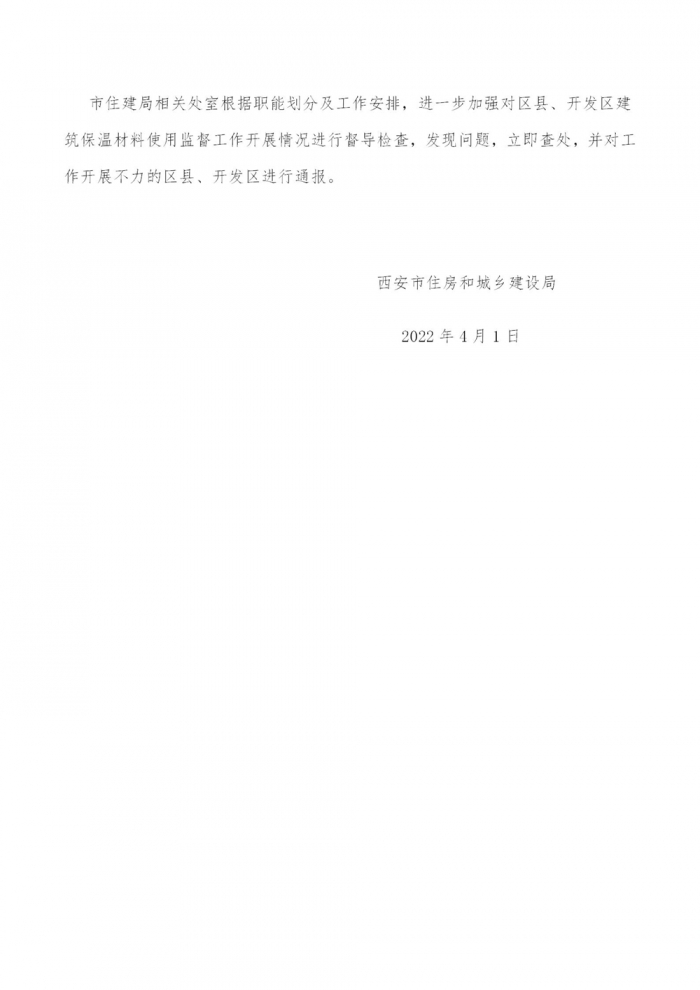 西安市住房和城鄉(xiāng)建設(shè)局關(guān)于進一步加強建筑保溫材料使用監(jiān)管工作的通知